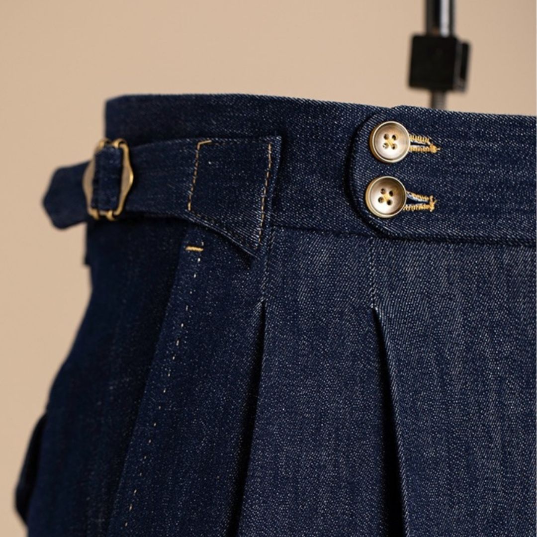 Marini Arezzo High Waisted Double Pleated Denim Trousers